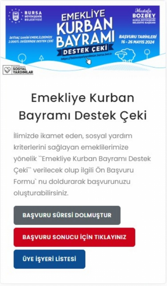 Bursa Büyükşehir'den "Emekliye Kurban Bayramı Destek Çeki" açıklaması: Tekrar kontrol edin!