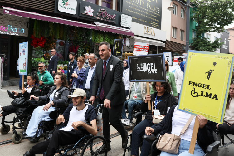 Bursa’nın daha yaşanılabilir ve daha ulaşılabilir hale gelmesi için hayatı kolaylaştırıcı çözümler üreten Büyükşehir Belediyesi, 10-16 Mayıs Engelliler Haftası kapsamında herkesin eşit ve mutlu yaşadığı bir Bursa için ‘Engelsiz Bursa Buluşması’ düzenledi. Sosyal Hizmetler Dairesi Başkanlığı Engelli Hizmetleri Şube Müdürlüğü aracılığıyla, Bursa Kent Konseyi Engelliler Meclisi ve engelli sivil toplum kuruluşlarının katkılarıyla düzenlenen buluşma, Cumhuriyet Caddesi Çancılar girişinden başlayıp Hanlar Bölgesinde son bulan kortej yürüyüşüyle başladı. Yürüyüşe özel gereksinimli bireyler ile birlikte Bursa Büyükşehir Belediyesi Başkanvekili Mehmet Aydın Saldız da katıldı. Büyükşehir Belediyesi Bandosu eşliğinde yapılan yürüyüşte, vatandaşlar ellerinde taşıdıkları dövizlerle engelsiz yaşam haklarına dikkat çekti.