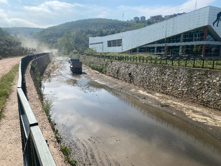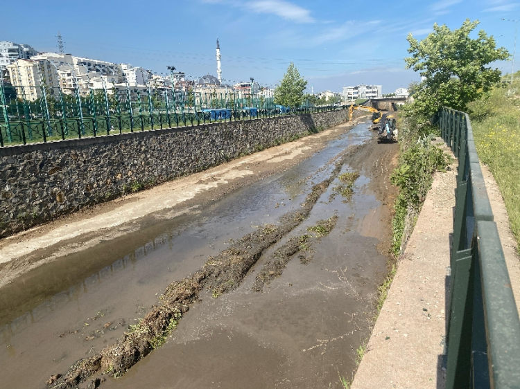 1600 metre uzunluğunda ve 15 metre genişliğindeki Mandıras Deresi’nde 3 kamyon, 1 adet CBS, TIR ve vinçle temizlik işlerini yürüten ekipler, daha temiz bir çevre için yaz boyunca kentin farklı noktalarında çalışmalarını sürdürecek.