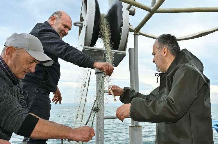 Konuşmaların ardından protokol üyeleriyle birlikte destek paketlerini balıkçılara dağıtan Başkan Aktaş, daha sonra balıkçı teknesine binip, ağları topladı. Tekneyle denize açılan Başkan Aktaş, ağlara takılan balıkları tek tek topladı.