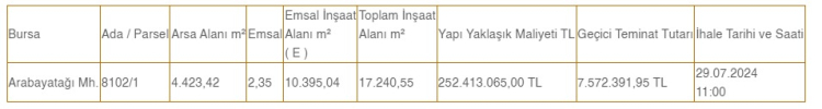 BURKENT, Yıldırım ilçesine bağlı Arabayatağı mahallesinde bulunan 8102 ada 1 parsel nolu 4 bin 423 metrekarelik arsa için ihale açtı.