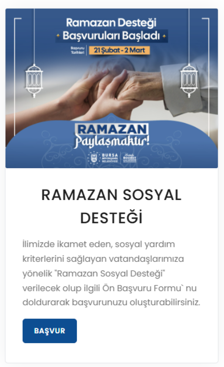 Bursa Büyükşehir duyurdu: Ramazan Desteği başvuruları başladı