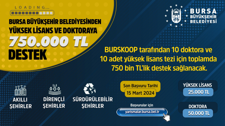 Yüksek lisans ve doktora düzeyindeki çalışmaları desteklemek amacıyla toplam 750.000 TL’lik kaynağın ayrıldığı programa, Bursa’da eğitim gören veya şehre katkı sağlayacak projeler üreten birçok öğrenci başvuruda bulundu.