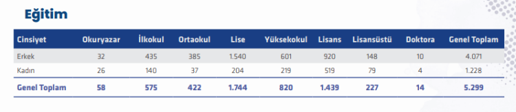 Eğitim düzeyleri açıklanırken hangi pozisyondaki çalışanlara ait olduğu belirtilmedi.
