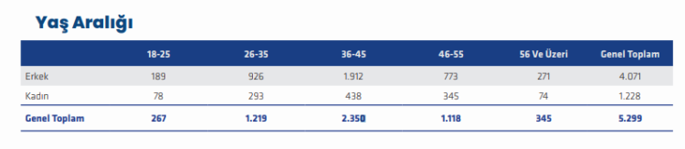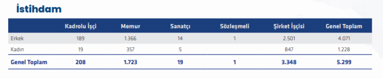 Paylaşılan verilere göre; 5 bin 299 çalışanın 4 bin 71'i erkek 1.228'i kadınlardan oluşuyor.