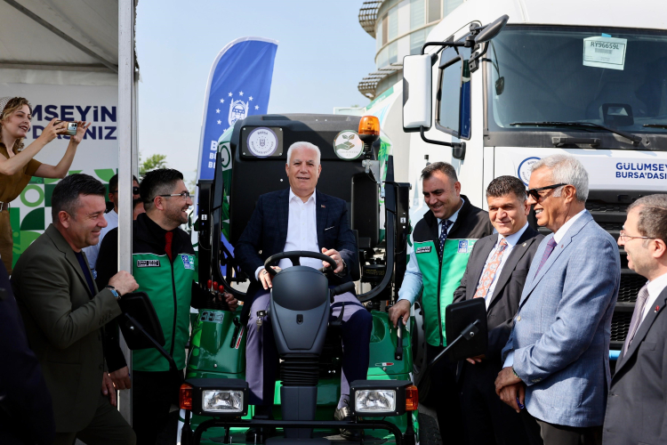 Bursa Büyükşehir Belediye Başkanı Mustafa Bozbey, ‘Yeniden Yeşil Bursa’ hedefiyle yürüttükleri çalışmaları daha etkili ve verimli yürütebilmek adına ekipmanları, araçları ve teknik imkânları güçlendirdiklerini söyledi. Artık kentlerin geleceğinin doğayla kurdukları ilişkiyle, çevreye gösterdikleri özenle şekillendiğini belirten Başkan Mustafa Bozbey, çağdaş bir kentin tarifini, ‘betonu yeşille dengeleyen, toprağa saygı duyan, suyu israf etmeyen ve her yaştan insanın nefes alabileceği yaşam alanları sunan kent’ olarak yaptı. Bursa’da bunun için çalıştıklarını ifade eden Başkan Bozbey, "Her gün 1100’e yakın personelimizle 9,5 milyon metrekarelik yeşil alanda, Bursalıların daha temiz bir çevrede yaşaması için faaliyetlerimizi sürdürüyoruz. 139 parkı, 239 cadde ve pek çok tarihi alanın peyzajını korumak için yoğun çaba harcıyoruz. Bursa’nın kendi kimliği olan ‘Yeşil Bursa’ya ancak bu şekilde ulaşabiliriz. Bu kapsamda her yıl ekipmanlarımızı güçlendiriyoruz. Bugün de 5 yeni kamyon ve tanker, 13 adet 4x4 pick-up, 16 adet çift kabin kamyonet, son teknoloji çim biçme traktörleri, çim biçme araçları ve ilave biçme motorlarını filomuza kattık. Türkiye’de ilk kez bizim sahip olduğumuz ve Tarım Peyzaj A.Ş.’nin filomuza kattığı bu araçlarla, hem zamandan tasarruf edeceğiz hem de daha çevreci bir çalışma yürüteceğiz. Yeşil alanları artırmak kadar var olanı yaşatmanın da önemli olduğuna inanıyoruz. Yeşil Bursa sadece bir unvan değil, korunması ve geleceğe taşınması gereken bir emanettir. Özlemimiz Yeniden Yeşil Bursa" dedi.