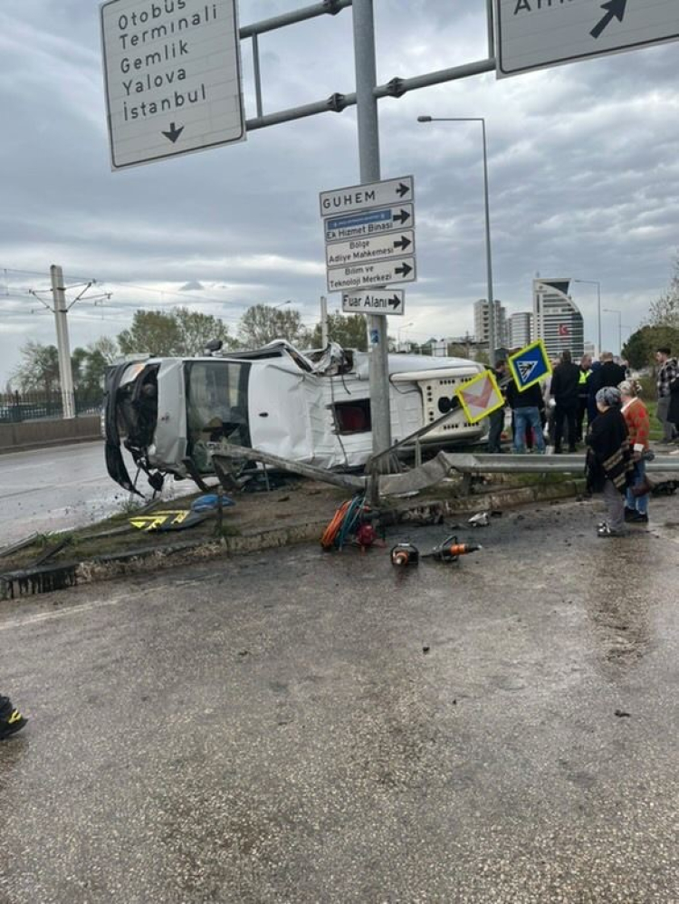 Edinilen bilgiye göre, Muharrem B. idaresindeki servis minibüsü Yalova istikametine seyir halindeyken, yağışlı havanın etkisiyle kontrolden çıkıp refüje uçtu.