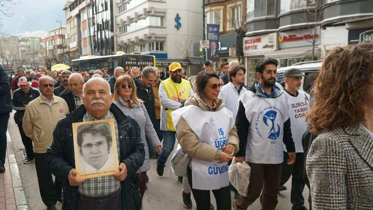 Bursa Tabip Odası 14 Mart Tıp Bayramı nedeniyle, basın açıklaması, yürüyüş ve çelenk bırakma töreni gerçekleştirdi.