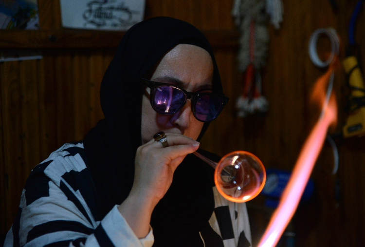 Bursa’da cam sanatçısı Fatma Turan (47), 15 yıldır, 1200 ile 1500 derece arasında değişen sıcaklıktaki camlara üfleyerek şekil veriyor. Daha önce monoton bir hayatı olduğunu belirten Turan, “Bu sanat, dünyayı ve kendimi bulduğum bir sanat. Ben hobimi mesleğime çevirdim. Hem eğitmenliğini yapıyorum hem kendimi buluyorum” dedi.