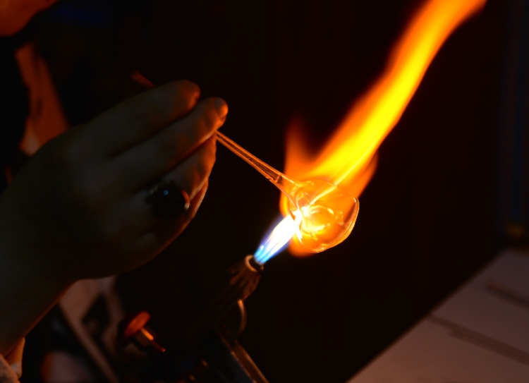 Bursa’da 15 yıldır cam sanatıyla ilgilenen Fatma Turan, 1200 ile 1500 derece arasında değişen sıcaklıktaki camlara üfleyerek şekil veriyor.