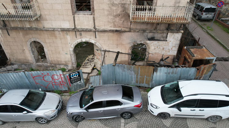 Dron kamerasına yansıyan görüntülerde, binanın uzun süredir kullanılmadığı, camlarının kırıldığı ve iç kısmının büyük ölçüde tahrip olduğu görüldü.