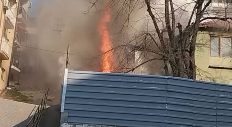 Rüzgarın da etkisiyle büyüyen yangın, bitişiğindeki tek katlı depo olarak kullanılan yapıya sıçradı.