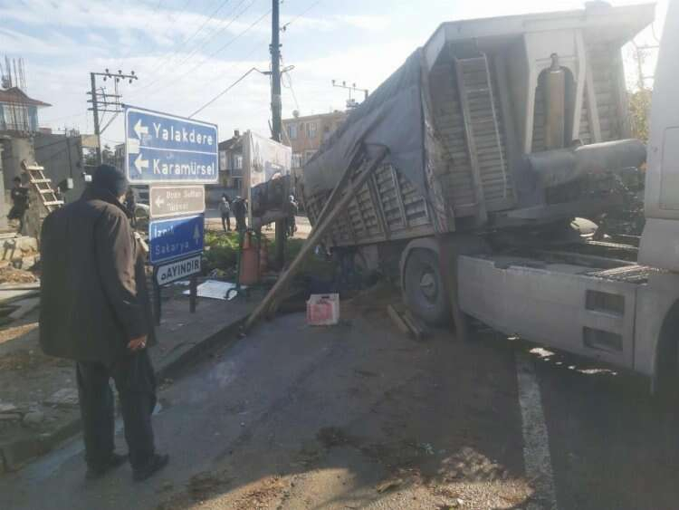 Olay, Bursa'nın İznik ilçesi Boyalıca Mahallesinde meydana geldi. Edinilen bilgiye göre, malzeme yüklü 25 tonluk tır, manevra yaparken kanala düştü.