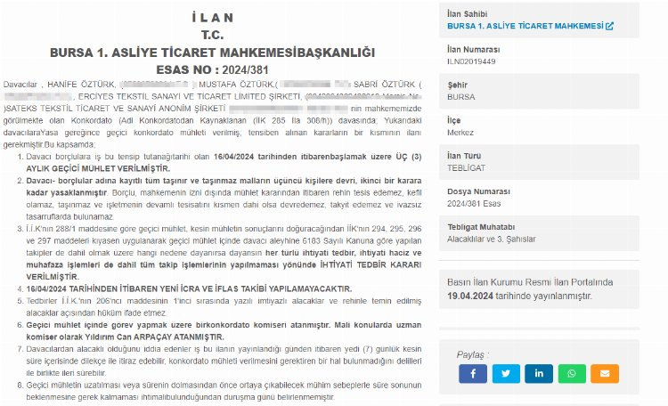 İşte konkordato kararları onaylanan ve 3 aylık geçici mühlet verilen şirketlerle ilgili o detaylar: