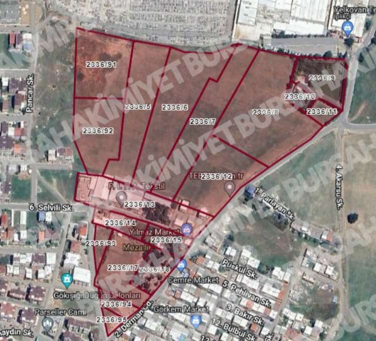 Panayır Mahallesi, 2336 ada 5-6-7-8-9-10-11-12-13-14-15-17-18-91-92-93-94-95 sayılı parseller, 2338 ada 1 parsel, 2339 ada 1-2-3-4-5-6-7-8-9-65-66-67-68-69-70-71-72 sayılı parseller, Demirtaş 7732 ada 1-31-33-34-35, 7734 ada 1 parsel sayılı parsellerde 3194 sayılı İmar Kanunu’nun 18.maddesine istinaden hazırlanan düzenleme Belediye Encümeni’nin 05.03.2024 tarih ve 575 sayılı kararı ile onaylanmış olup, düzenleme harita ve hesap cetvelleri 13.03.2024 tarihinden itibaren 1 ay süre ile Osmangazi Belediyesi askı ilan panosu ve belediyemiz internet sitesinde askı ilanına çıkarılmıştır.