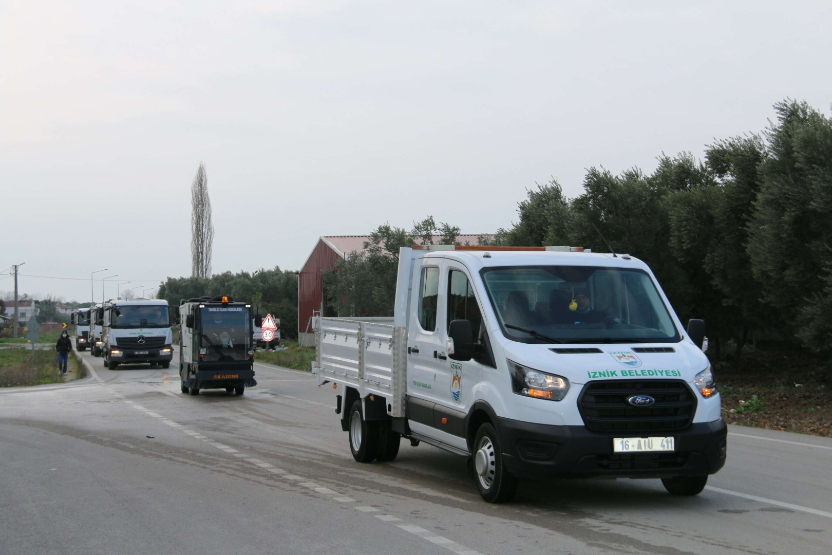 Bursa'da İznik Belediyesi, hizmetlerin zamanında ve hızlı bir şekilde gerçekleştirilmesi için 2020 ve 2023 yılları arasında farklı türlerde 30 yeni aracı vatandaşların hizmetine sundu.
