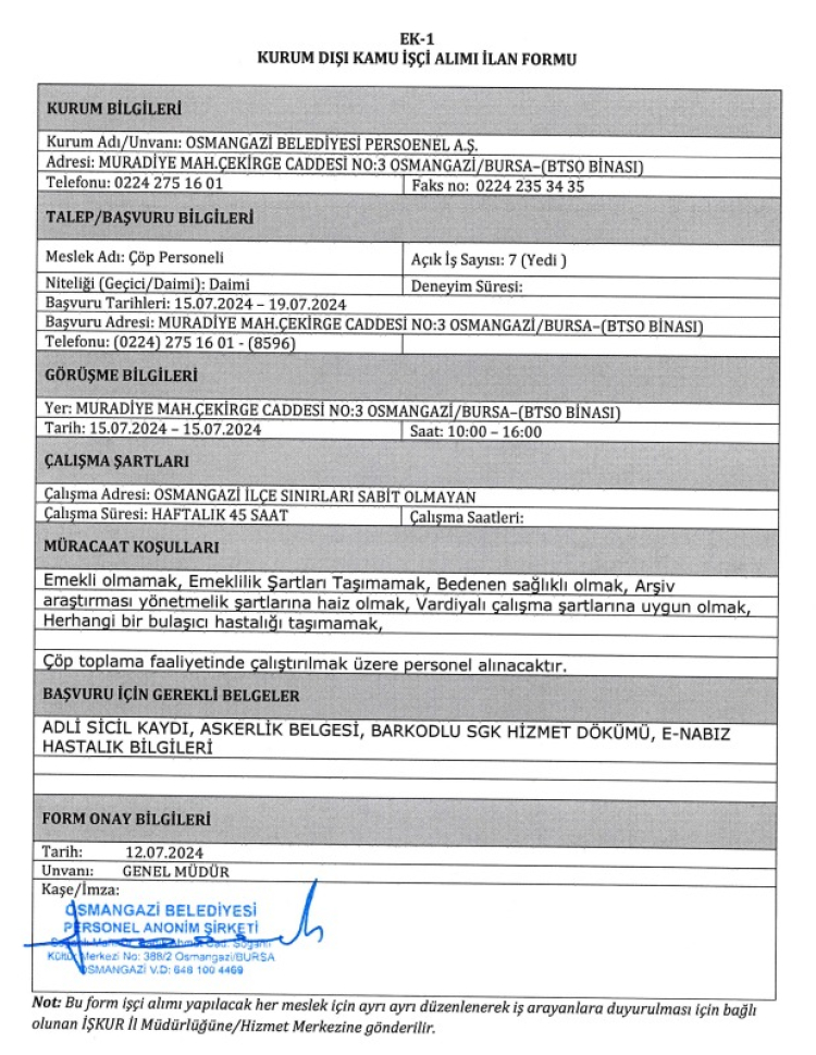 Osmangazi Belediyesi, İŞKUR üzerinden yayımladığı ilan ile personel alınacağını açıkladı.