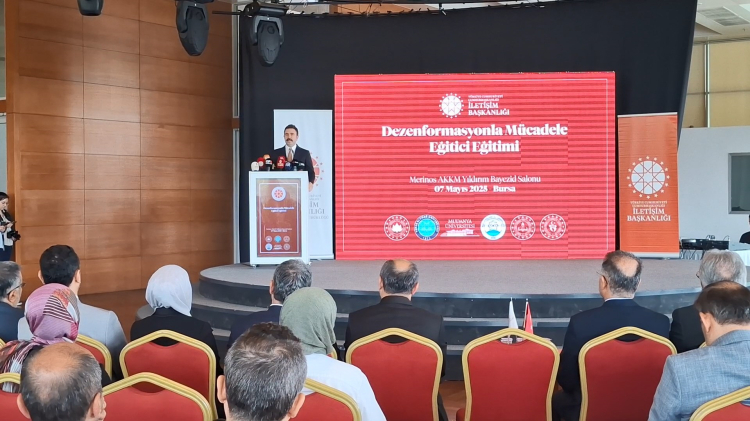Bursa'da kurumlar arası iş birliğiyle yürütülen dezenformasyonla mücadele çalışmaları kapsamında, Cumhurbaşkanlığı İletişim Başkanlığı Bursa Bölge Müdürlüğü tarafından 377 eğitimciye 'Dezenformasyonla Mücadele Eğitici Eğitimi' verildi.
