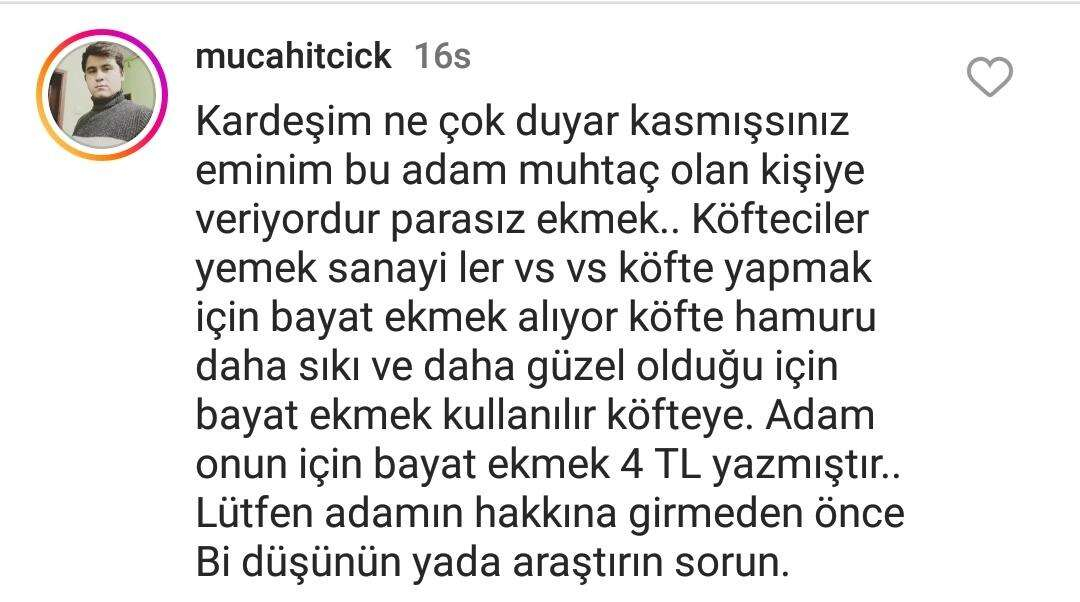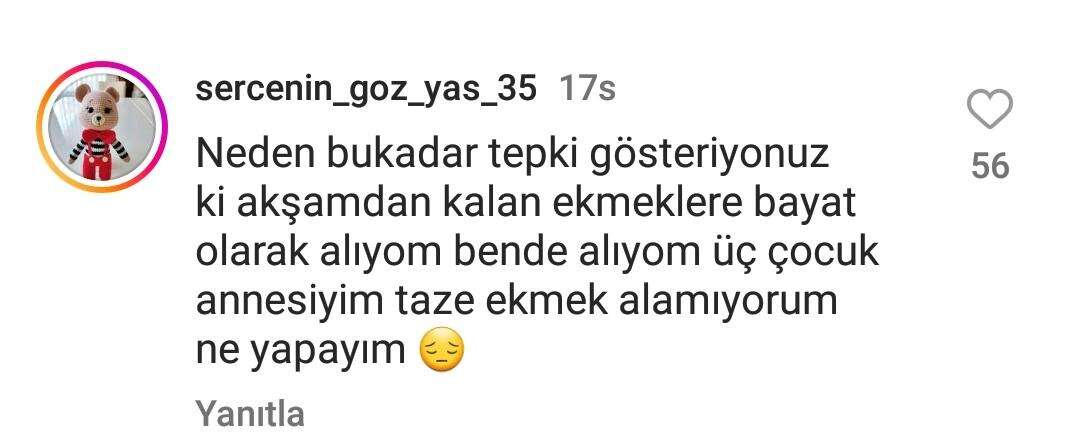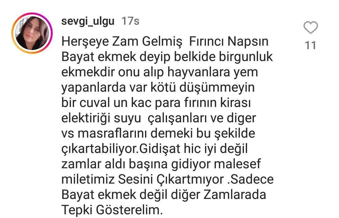 Bursa'nın Yıldırım ilçesinde bir fırının camına asılan, "Bayat ekmek 4 TL'dir" yazısı sosyal medyada gündem oldu. Sosyal medyadaki bazı vatandaşları fırıncıyı haklı bulurken bazı kullanıcılar ise eleştiride bulundu. Fırıncıya destek veren bir kullanıcı, "Her şeye zam gelmiş fırıncı ne yapsın. Bir çuval un kaç para, fırının kirası elektriği, suyu çalışanları ve diğer masraflarını demek ki bu şekilde çıkartabiliyor. Gidişat hiç iyi değil. Zamlar aldı başını gidiyor maalesef." yorumunda bulundu.