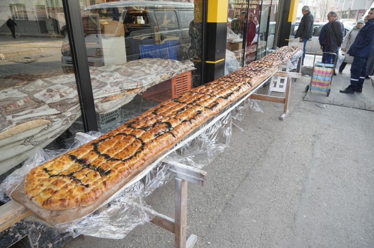 Bursa'da 7 metrelik pideyi gören telefonuna sarıldı!
