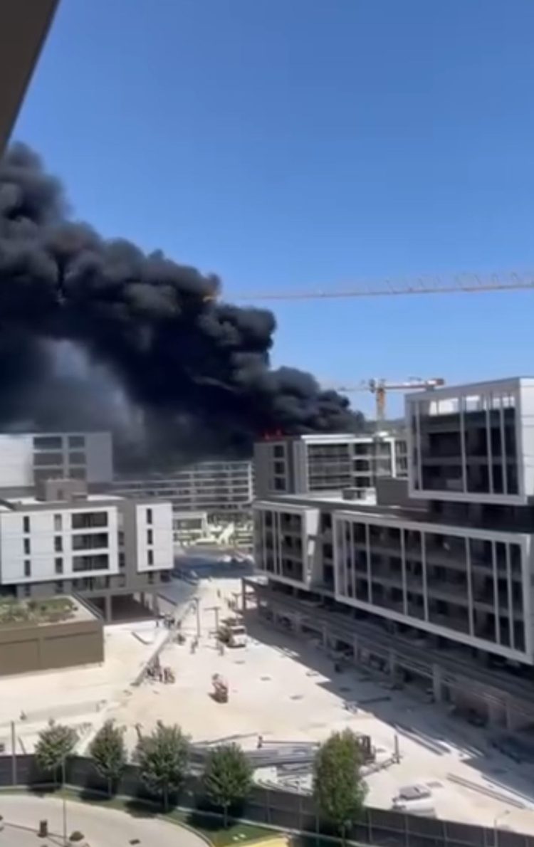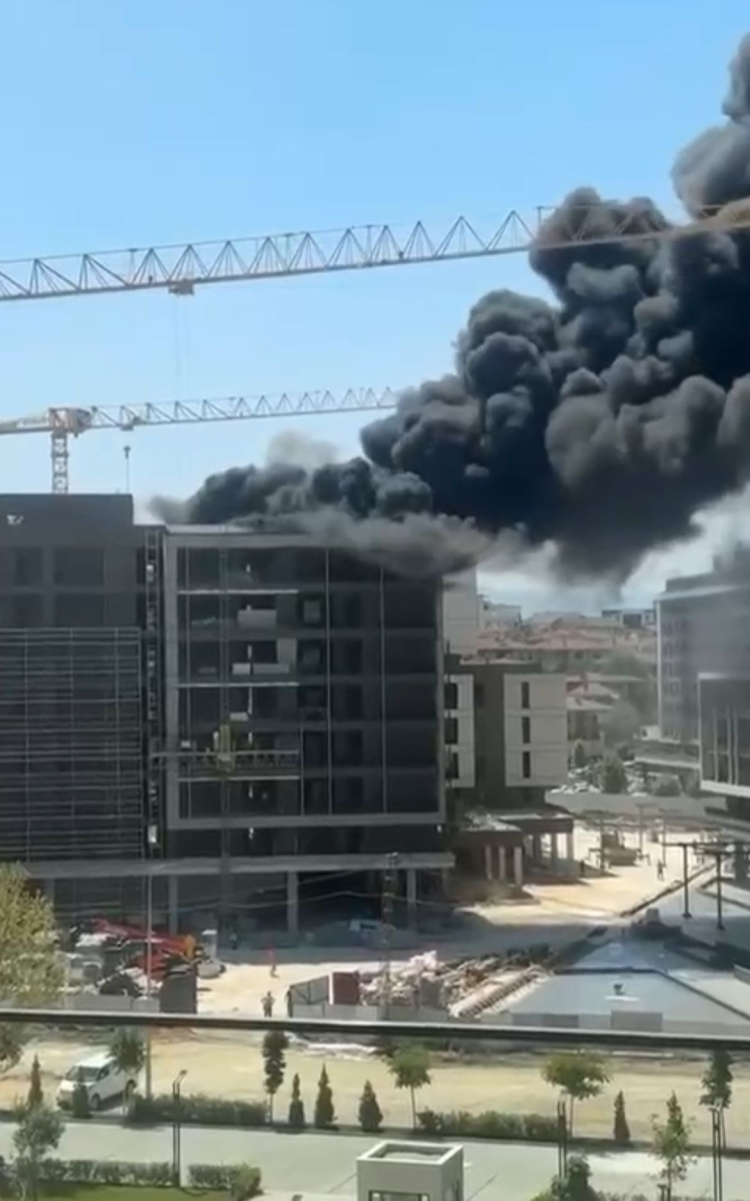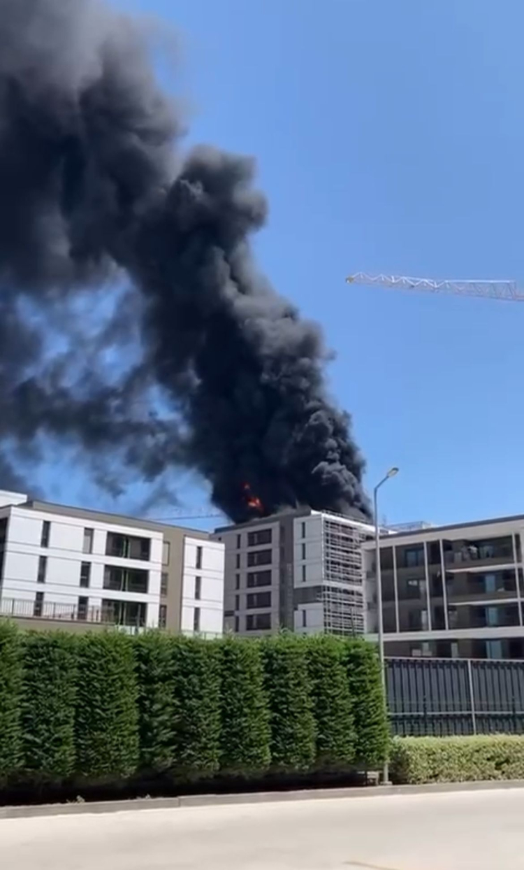 Bursa'da 8 katlı inşaatın çatısı alev alev yandı