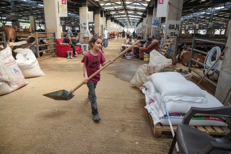 Bursa'da 8 yaşındaki Ecrin hayvan pazarının en küçük satıcısı