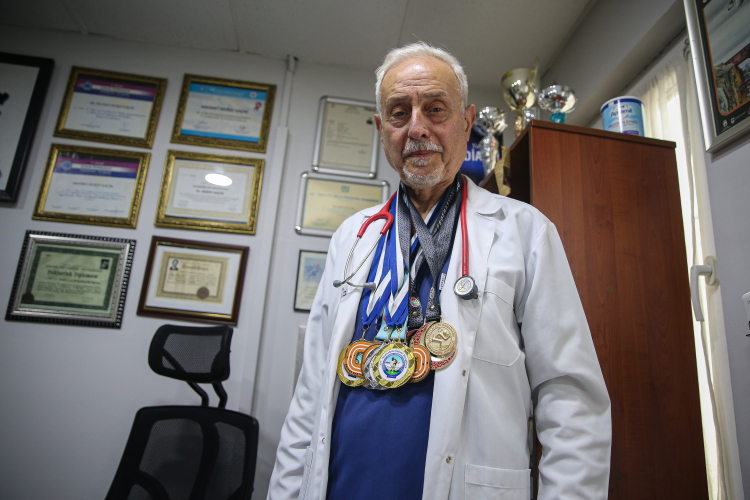 Bursa'nın İnegöl ilçesinde, çocuk doktoru olarak görev yapan 80 yaşındaki milli atlet Mehmet Murat Kaçar, yeni şampiyonluklar için pistlerde koşmaya devam ediyor.