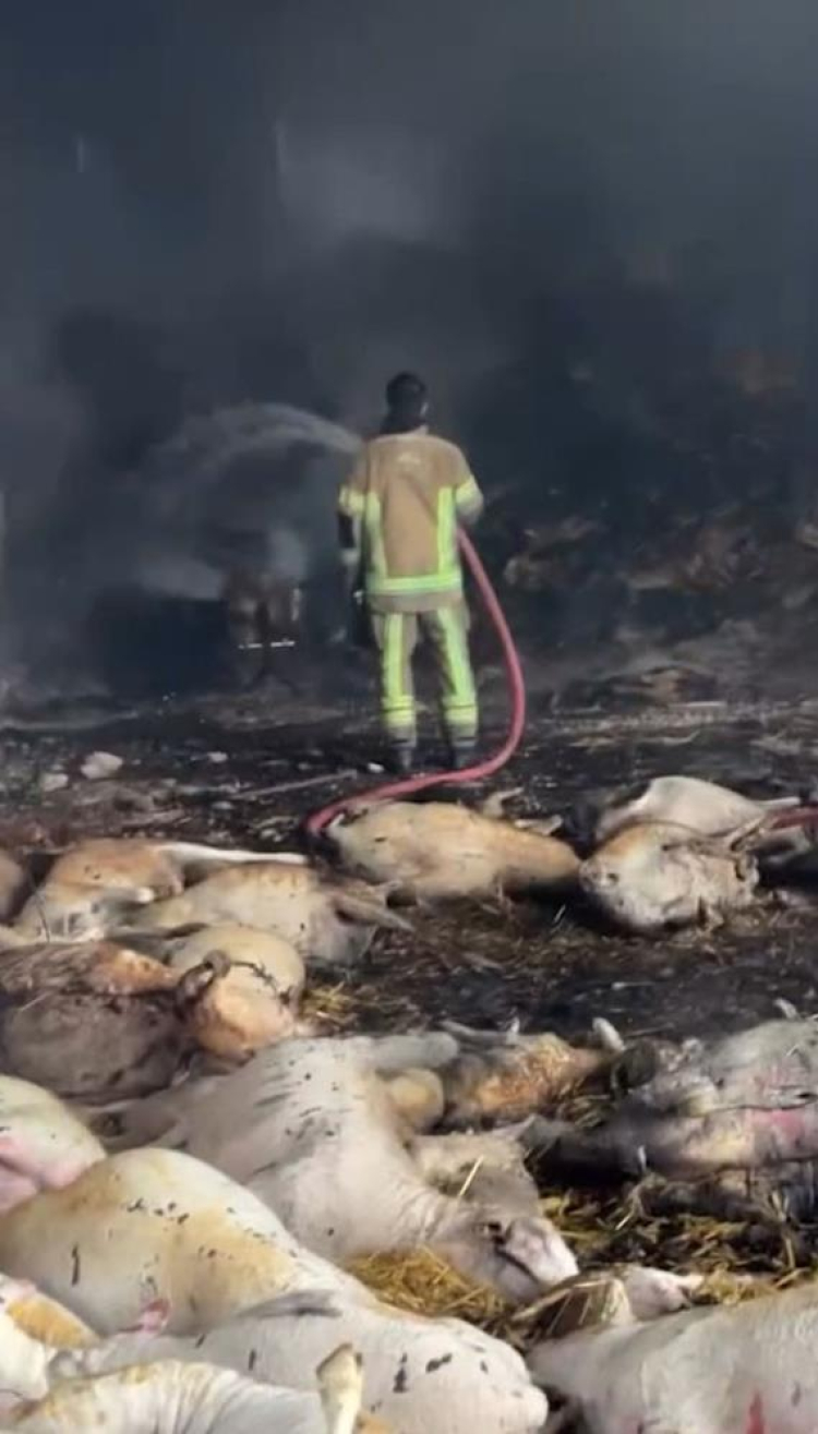 Kısa sürede yayılan alevlerin sardığı ahırdaki yaklaşık 50 koyun, 120 kuzu telef oldu.