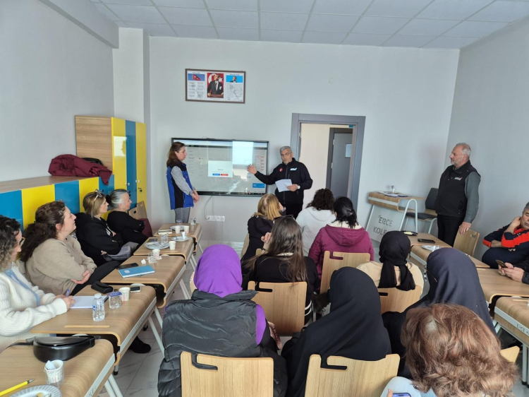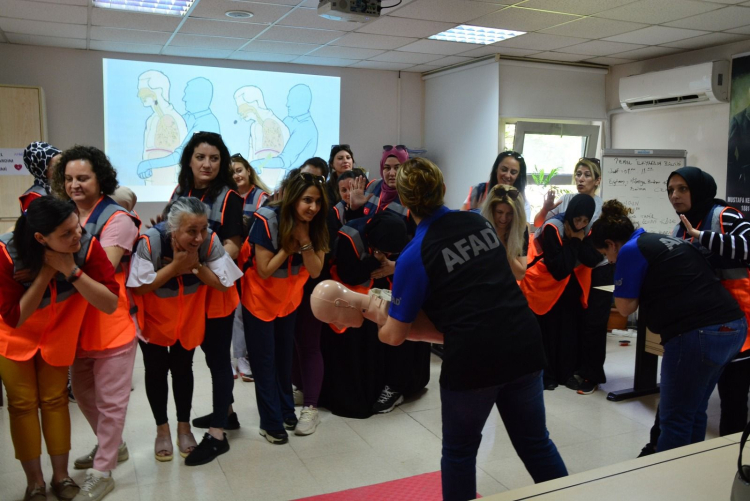 Demirci Mahallesi’nde yaşayan ve çoğu kadınlardan oluşan 21 kişilik gönüllü ekibe, ‘Afet Farkındalık’, ‘Lojistik, İntikal ve Güvenlik’, ‘Bina Yapı Sistemleri ve Olay Yeri Yönetimi’, ‘Enkaz Alanına Giriş Teknikleri, Tahliye ve Türleri’, ‘İpler ve Düğüm Teknikleri’, ‘Hasta ve Yaralı Taşıma Teknikleri, Sedye Kullanımı’, ‘Arama Kurtarma Malzemeleri ve Uygulamalı Kullanımı’, ‘Çadır Kurulumu ve İnsani Yardım Uygulamaları’, ‘Psikososyal Destek’ ve ‘Yangına Müdahale ve Söndürme Tatbikatı’ başlıklarında teorik ve uygulamalı eğitimler verildi.