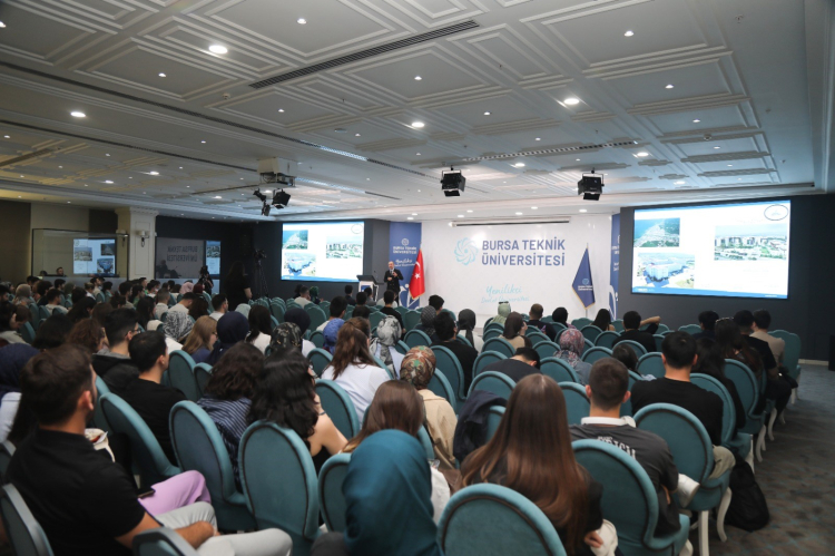 Mimar Sinan Yerleşkesi Turkuaz Salon’da her hafta çarşamba günü düzenlenen BTÜ Konuşmaları’nın 4’ncü sezon 38’nci bölüm konuğu, BTÜ Mühendislik ve Doğa Bilimleri Fakültesi Gıda Mühendisliği Bölümü Öğretim Üyesi ve TÜBA Genç Bilim İnsanı Ödülü Sahibi Doç. Dr. Furkan Türker Sarıcaoğlu oldu. Gıda bilimi alanında yaptığı çalışmalarla, "Üstün Başarılı Genç Bilim İnsanı Ödülü"ne layık görülerek, 18 Aralık 2024’de düzenlenen törenle, Cumhurbaşkanı Recep Tayyip Erdoğan tarafından ödülü takdim edilen Doç. Dr. Furkan Türker Sarıcaoğlu’nun konuk olduğu programa; BTÜ Rektör Yardımcısı Prof. Dr. Barış Tamer Tonguç, akademisyenler ve öğrenciler katıldı. "Akademisyenlik Yolunda Başarı" başlıklı konuşmasını yapan Doç. Dr. Furkan Türker Sarıcaoğlu, akademik kariyerinde izlediği yolu anlatarak öğrencilere tavsiyelerde bulundu. Bilimsel çalışmanın bir ekip işi olduğunu vurgulayan Doç. Dr. Sarıcaoğlu, ekibin birbirini tamamlamasının ise çok kritik olduğunun altını çizdi. Bu kapsamda akademik çalışmalarının yanında Bursateknopark’ta kurduğu "Sarıcaoğlu Research Group" çatısı altında gıda bilimi alanına yönelik çalışmaları sürdürdüğünü dile getiren Doç. Dr. Sarıcaoğlu, buradaki başarılarının temelinde iyi ekip arkadaşlarının olduğunu söyledi.