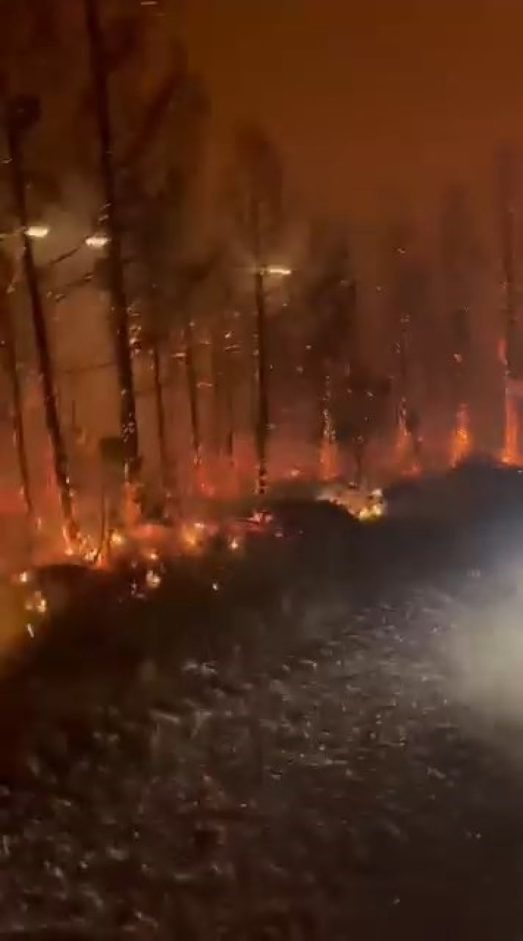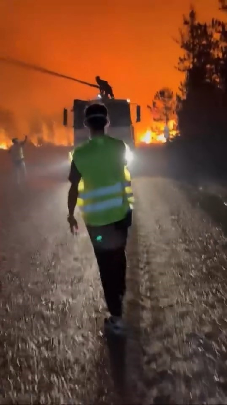 Geceyi aydınlatan alevler, biranda yön değiştirmesi mücadeleye katılanlara da korku dolu anlar yaşatıyor.