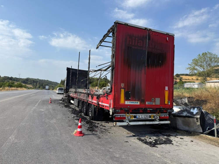 Üzerinde çamaşır makinesi yüklü olduğu öğrenilen Murat Yamanarda (51) idaresindeki 55 AIY 740 tır, seyir halindeyken bir anda yanmaya başladı.