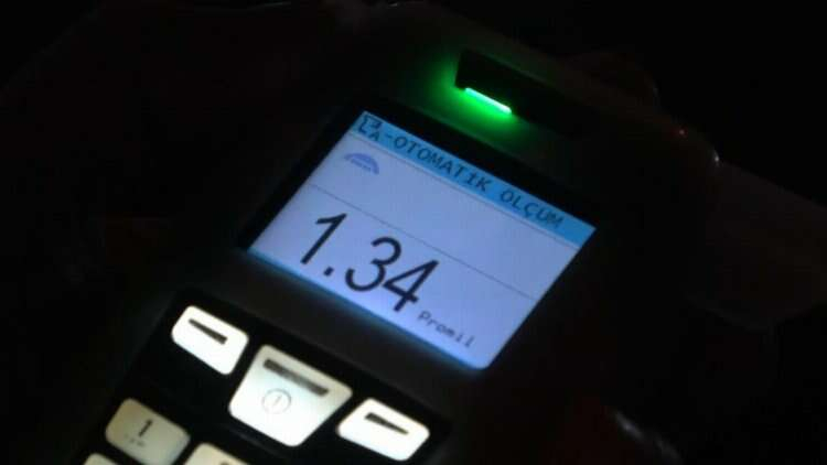 Uygulama noktasına 1.34 promil alkollü takılan 34 ZR plakalı araç sürücüsü Sezgin D.’nin ehliyetine 6 ay el konuldu.