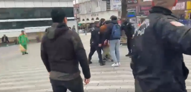 Şehreküstü 15 Temmuz Demokrasi Meydanı'nda konferans için duyuru yapıp afiş dağıtan Furkan Eğitim ve Hizmet Vakfı gönüllüleri, polisler tarafından engellendiğini ve gözaltına alındığını öne sürdü.