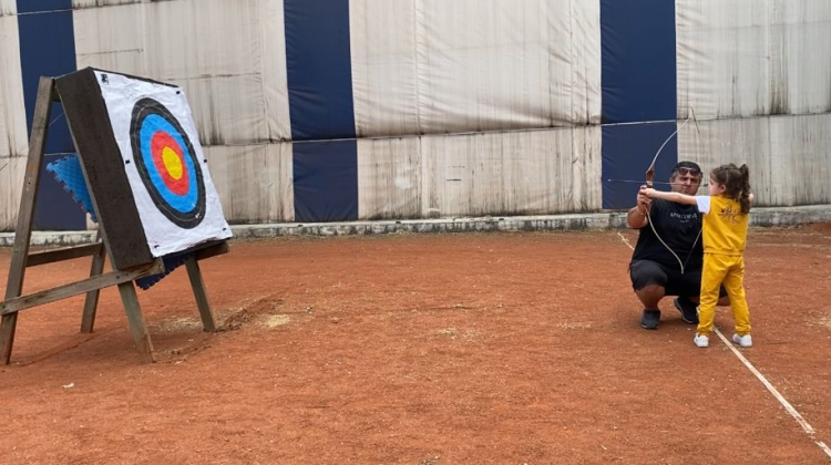 Anaokulu öğretmenlerinin de yer aldığı ziyarette minik öğrenciler ok atma deneyimini yaşadı.