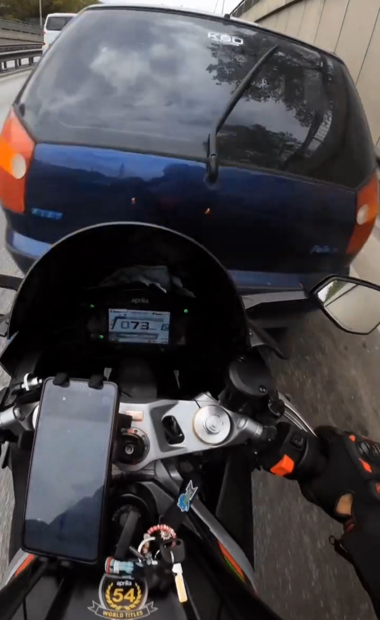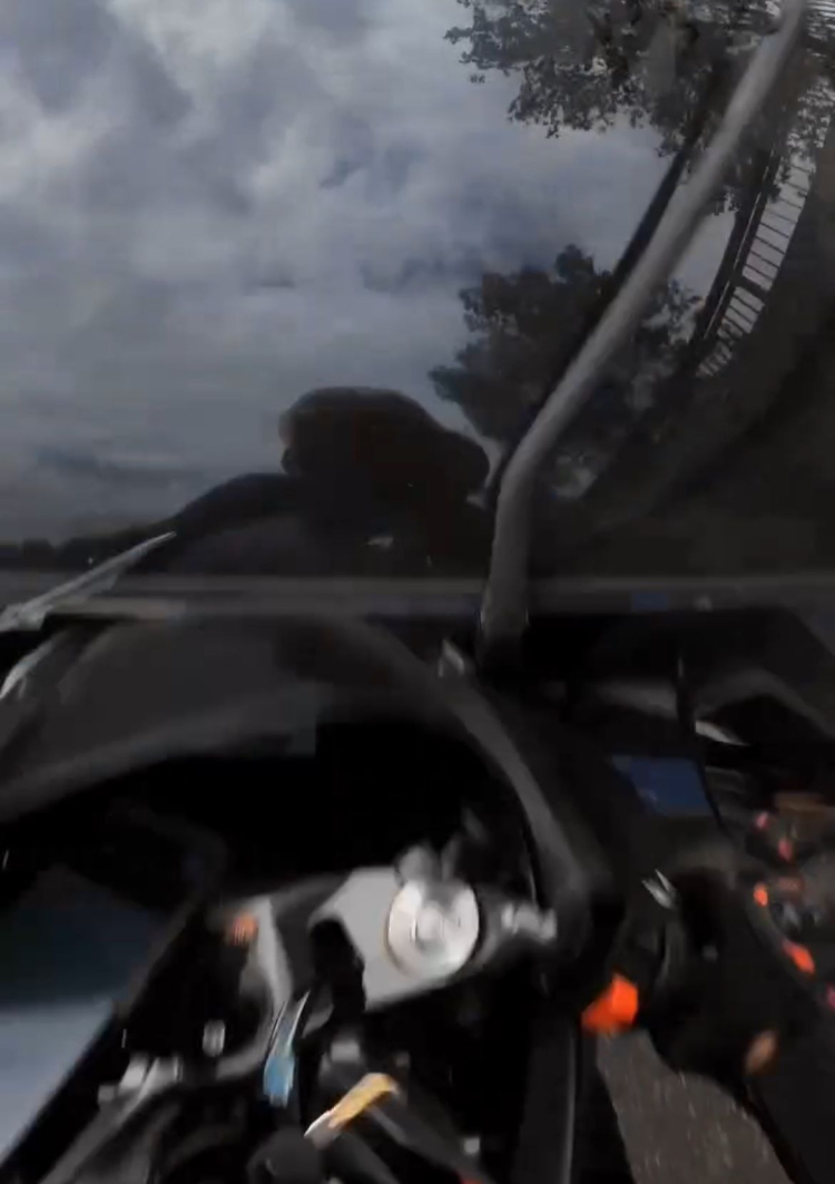 Motosiklet sürücüsü yere düşerken, o anlar kask kamerasıyla kaydedildi.