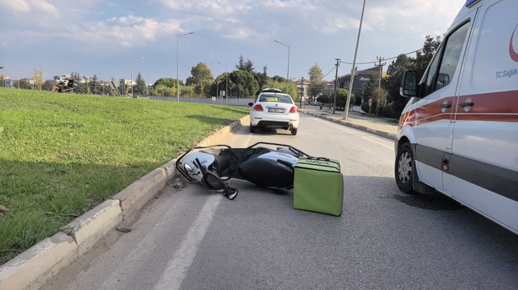 Bursa'nın İnegöl ilçesinde otomobilin arkasına arıza yaptığı için bağlanıp çekilen motosiklet devrilerek kaldırıma çarptı, sürücüsü yaralandı.