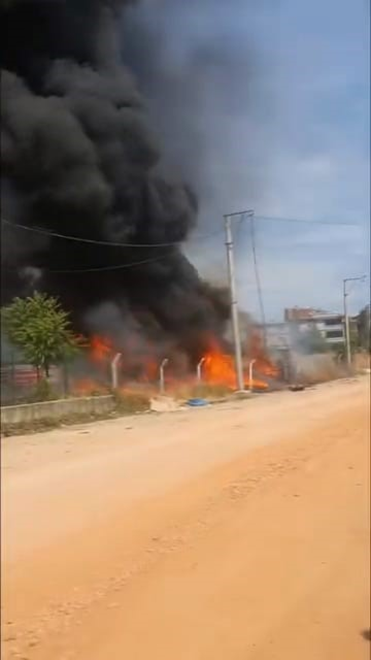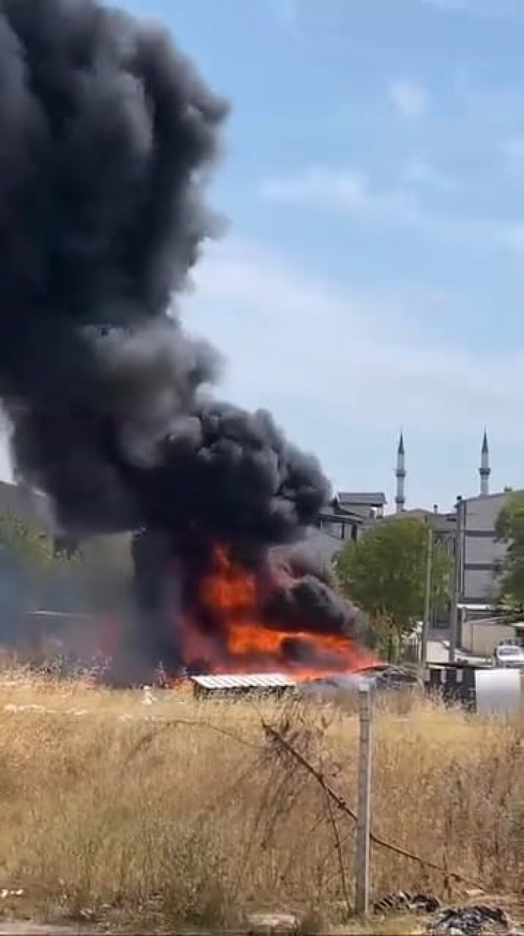 Yangın, saat 12.00 sıralarında Huzur Mahallesi'nde faaliyet gösteren araç denetim istasyonu yanındaki boş alanda atıl olan plastik, karton ve BUSKİ'ye ait altyapı boruları malzemelerinde meydana geldi.