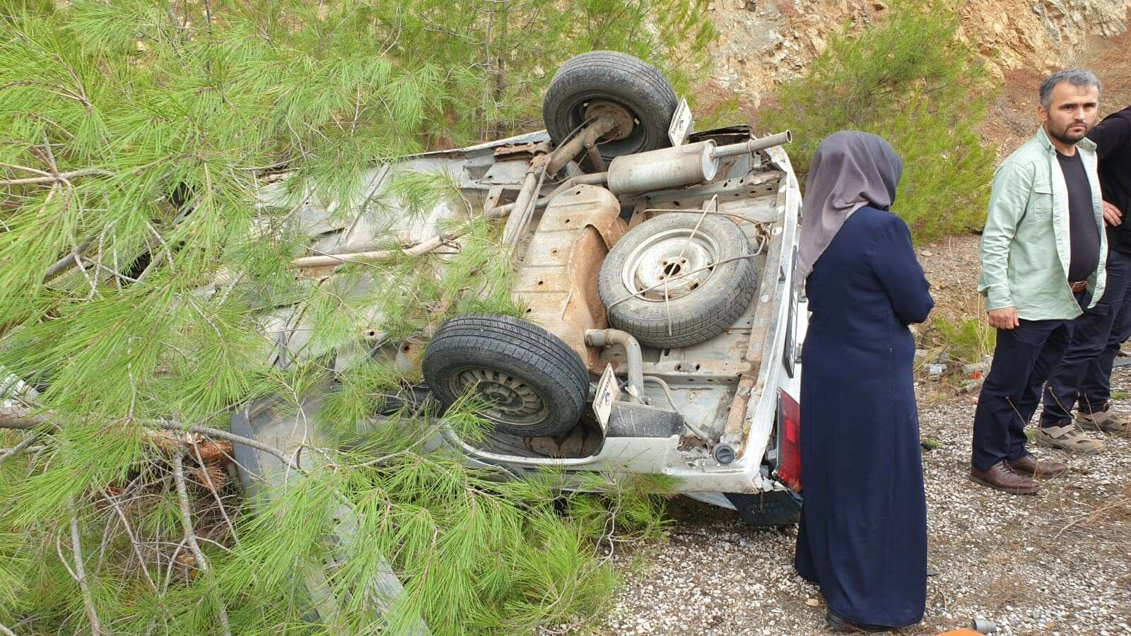 Olay yerine sevk edilen ekipler, ters dönen araçtan R.A.'yı çıkararak hastaneye sevk etti.