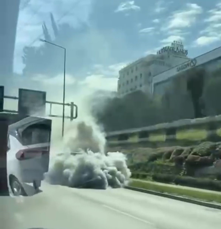 Aracın motor kısmından yükselen yoğun dumanlar nedeniyle sürücüler büyük endişe yaşarken, olay yerine itfaiye ve polis ekipleri sevk edildi.