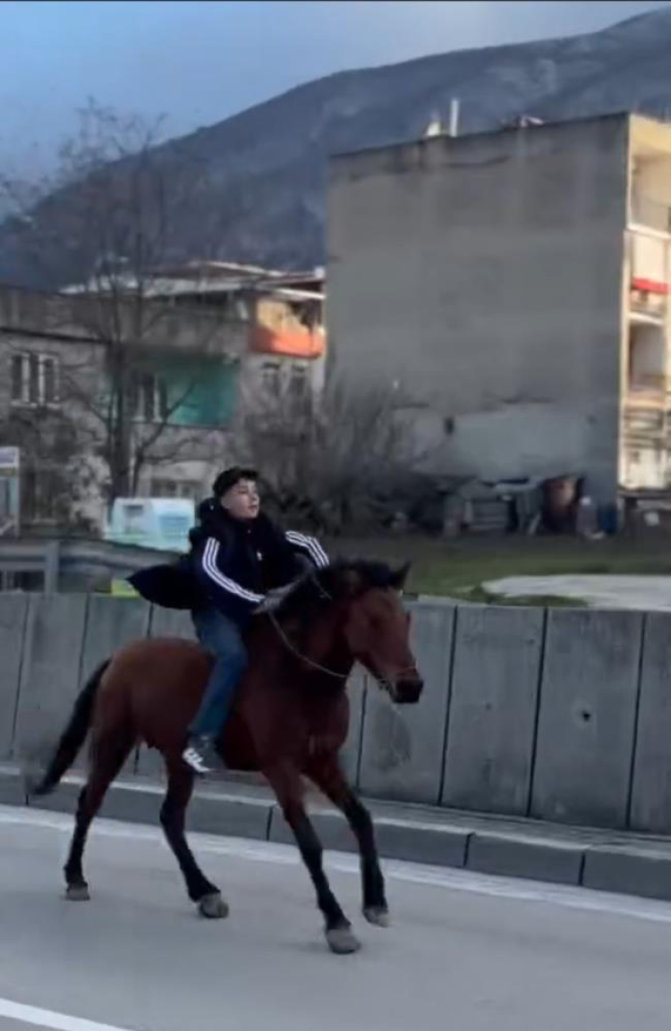 Bursa'da 15-16 yaşlarında bir genç, bindiği atla anayolda trafiğe çıkıp dört nala koştu. O anlar kameraya yansırken, genci görenler dönüp bir daha baktı.