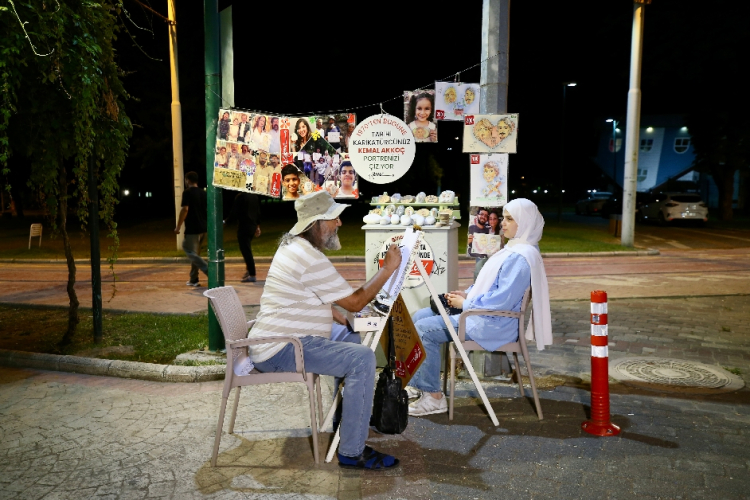 Bursa’da karikatürist Kemal Akkoç (76), ortaokulda öğretmenlerini çizerek başladığı sanatına, 55 yıldır Kültürpark’taki aynı ağacın altında devam ediyor. Şimdiye kadar 5 Büyükşehir Belediye Başkanı, bir de başkanvekilini resmeden emekli edebiyat öğretmeni Akkoç, akşamları ağacın gölgesine koyduğu portatif sandalyesine oturarak, 3 dakikada 1 karikatür çiziyor.