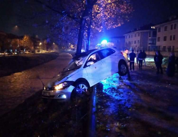 Bekir Osman Ç. yönetimindeki otomobil, yağışnedeniyle kayganlaşan yolda aşırı hızın da etkisiyle sürücüsünün direksiyon kontrolünü yitirmesi sonucu kenarındaki dere yatağında bulunan ağaca çarparak durabildi.