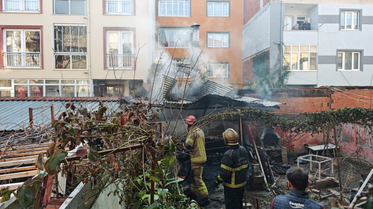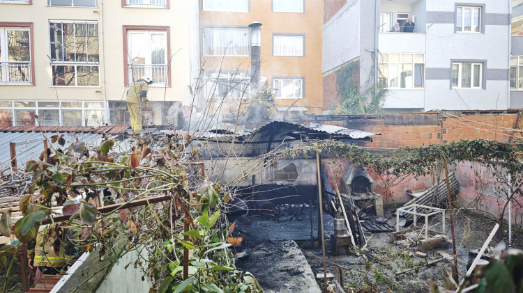 Mahmudiye Mahallesi Aslanlar Sokak'taki bir evin bahçesinde bulunan barakada henüz bilinmeyen nedenle yangın çıktı.
