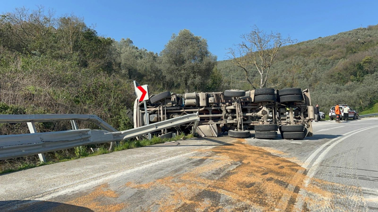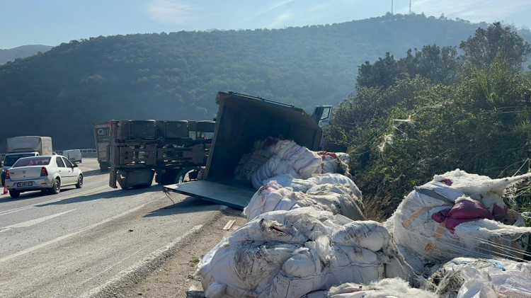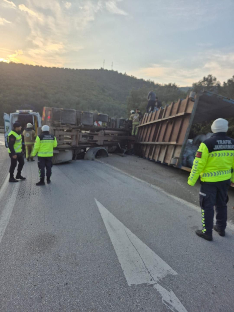 H.N. idaresindeki 16 NB 924 plakalı cam elyaf yüklü kamyon sürücüsünün direksiyon hakimiyetini kaybetmesiyle kontrolden çıktı. Savrulan araç, bariyerleri aşarak yan yattı. İhbarla olay yerine jandarma, itfaiye ve sağlık ekipleri sevk edildi. Yaralanan sürücü ile yanındaki O.N. ve C.N. sağlık ekiplerinin ilk müdahalesinin ardından ambulanslarla kaldırıldıkları İznik Devlet Hastanesi’nde tedaviye alındı.