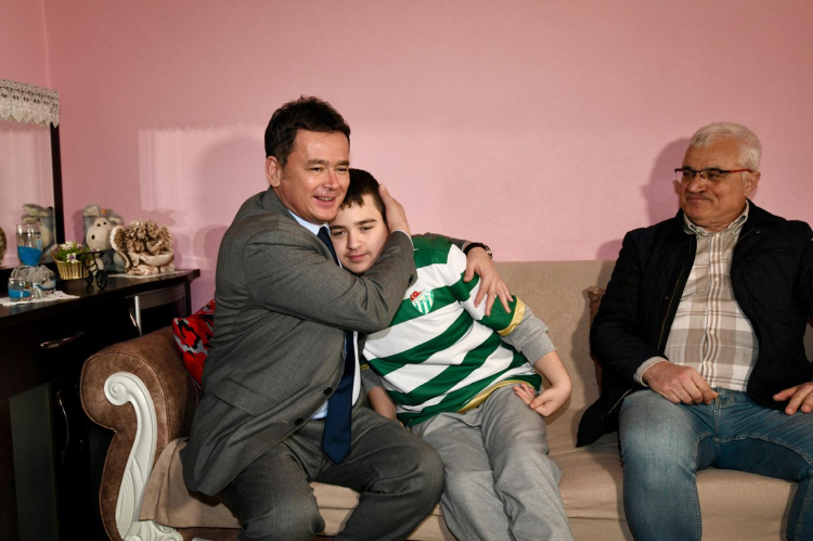 Topluma dokunan çalışmalarıyla gönüllerde iz bırakan Osmangazi Belediye Başkanı Erkan Aydın, otizmli Yunus Emre Erdem’in davetine kayıtsız kalmadı. Yunus Emre’nin doğum gününü kutlamak amacıyla ailesinin evini ziyaret eden Başkan Aydın, özel bireyin mutluluğuna ortak oldu.