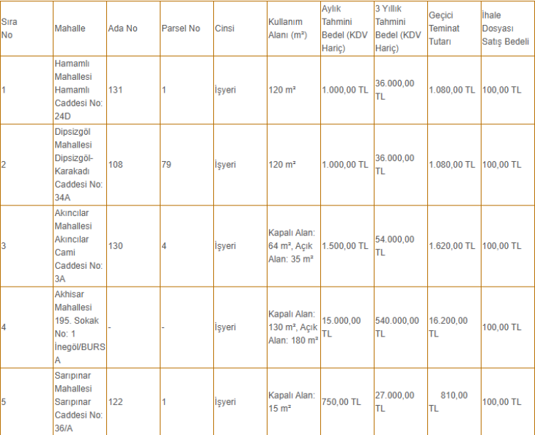 İnegöl Belediyesi aralarında iş yeri de bulunan çok sayıda taşınmazı ihale usulü ile en ucuzu 750 TL'den başlayan fiyatlar ile kiraya verecek. İşte detaylar...