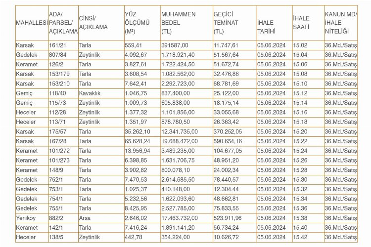 Bursa Orhangazi Belediyesi, toplamda 21 adet arsa, zeytinlik, kavaklık ve tarlayı teker teker satışa çıkardı.