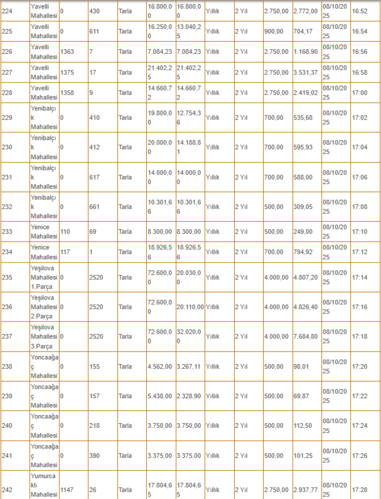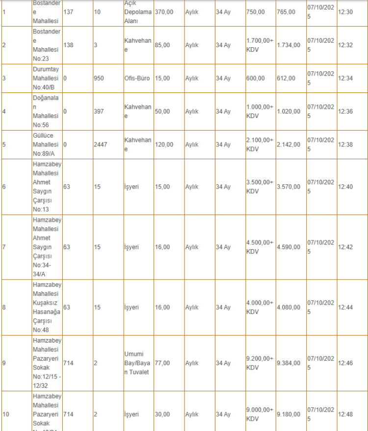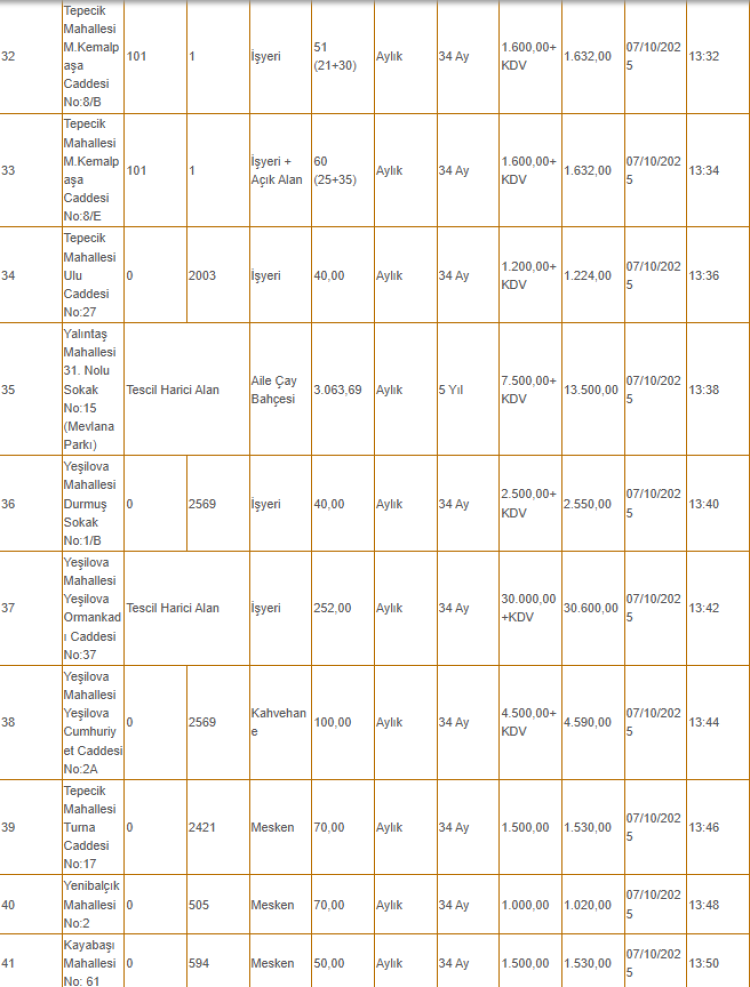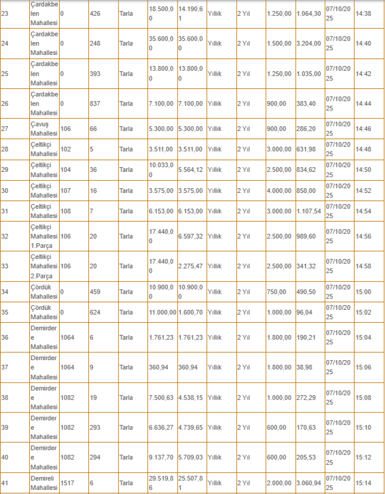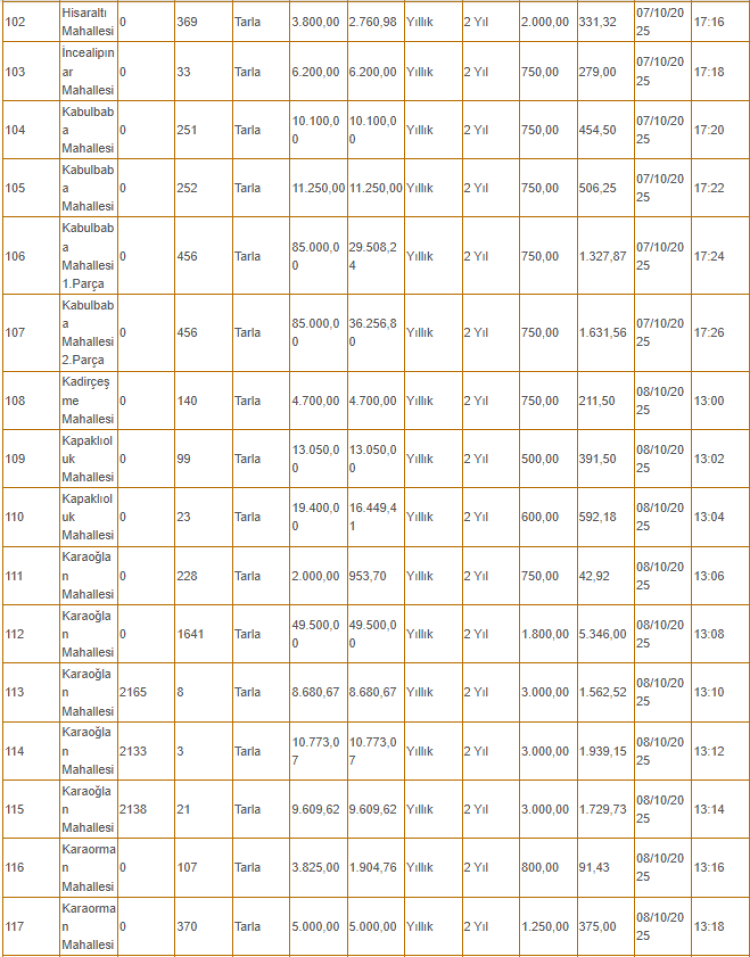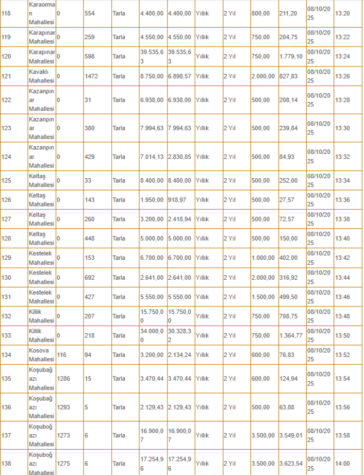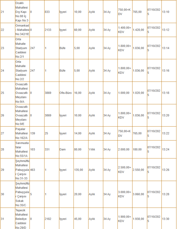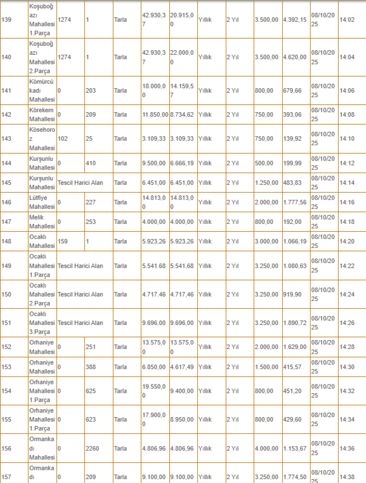Kiralanacak olan taşınmazlar arasında tarlanın yanı sıra depo, iş yeri ve büfe gibi yerler de yer alıyor.