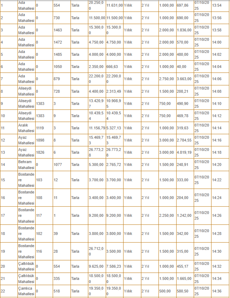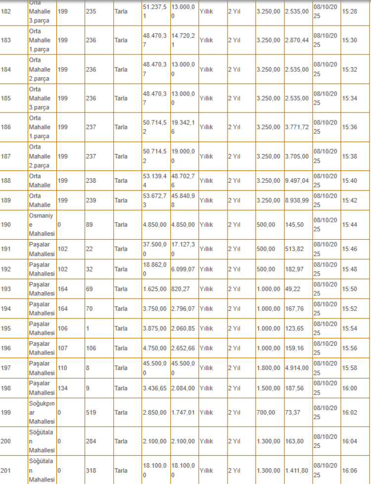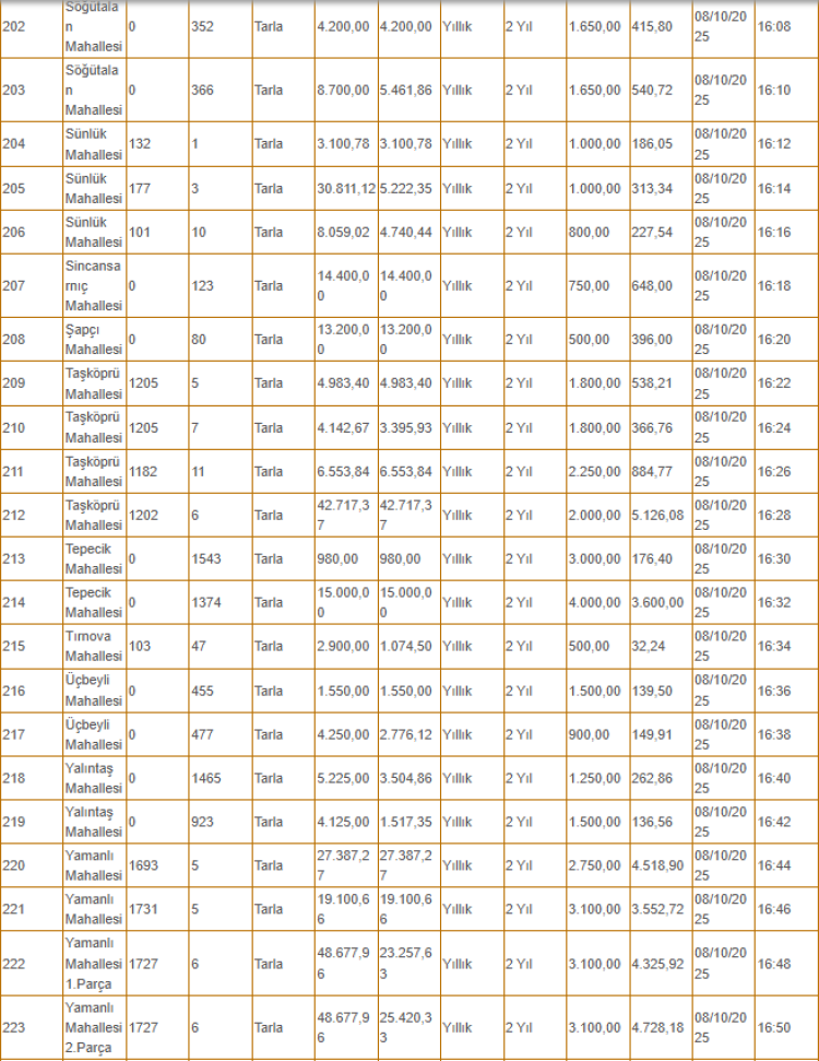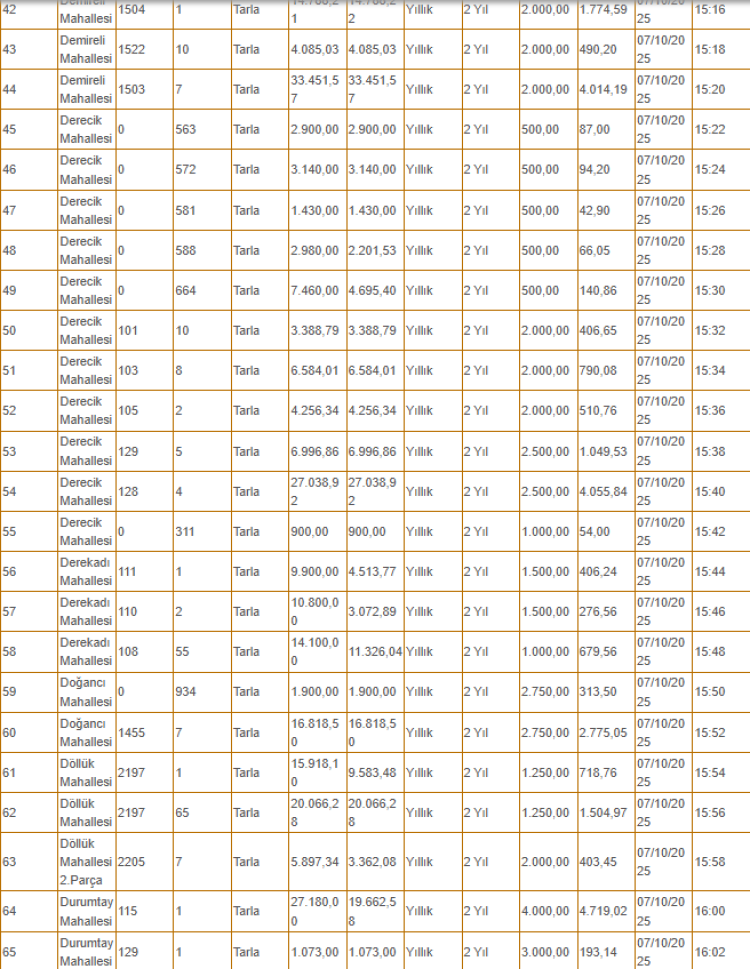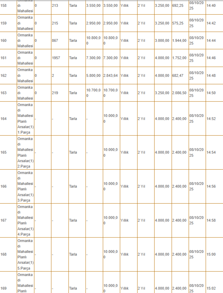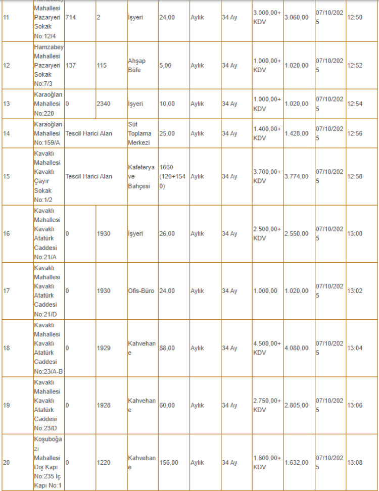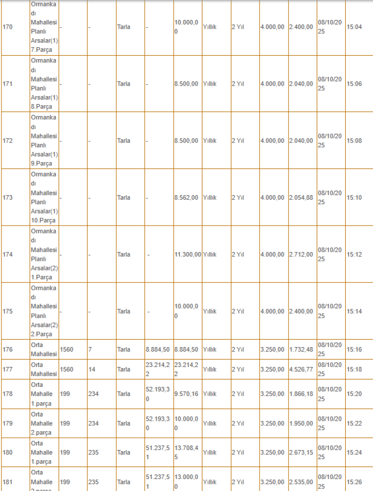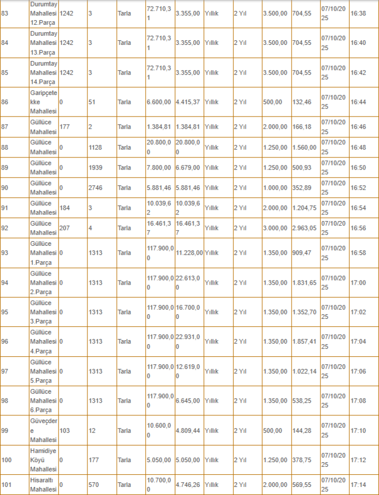 Kiralanacak olan taşınmazlar arasında tarlanın yanı sıra depo, iş yeri ve büfe gibi yerler de yer alıyor.